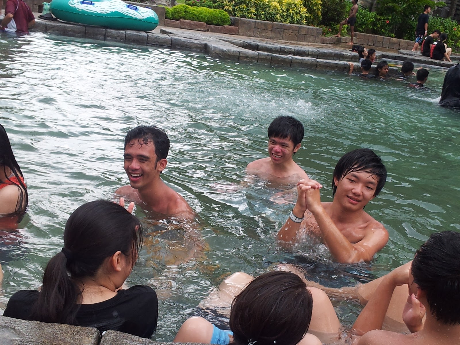 And after that kitorang pergi R&R. Hotsprings and Jacuzzi~ Haha. Panas! Sampai budak2 lelaki pun hilang macho, sebab tak tahan. Aku aje yang paling macho, rileks je. Haha mula lah perasan ni. Mula2 tu, sampai ada orang kena baling masuk hotspring lah! Kan Aimin? Hahaha padan muka dia xD So lepas dah lega and energised, kitorang pergi balik main air dekat slide. Pastu jalan2 ambil angin kat river balik. Aku kena buli T__T dengan geng budak lelaki, sebab aku selalu mengelak bila sampai dekat air terjun. Haha. Bukan takut air okey?! Just saje nak elak! But terkena juga anyways. Grrrrr. And then acara terbalikkan pelampung. Nabil dengan Ajim punya angkara lah tu. Huhuu. Tak sangka aku dengan Aimin make a good team. Haha. Bagus, efficient betul penarik pelampung aku tu. Tak terkejar Faiz dengan Syauqi, yeahhhh! Selamat seyhh! xD